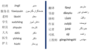 در ادامه شغل ها به زبان چینی همراه با تلفظ باهم یاد میگیریم.