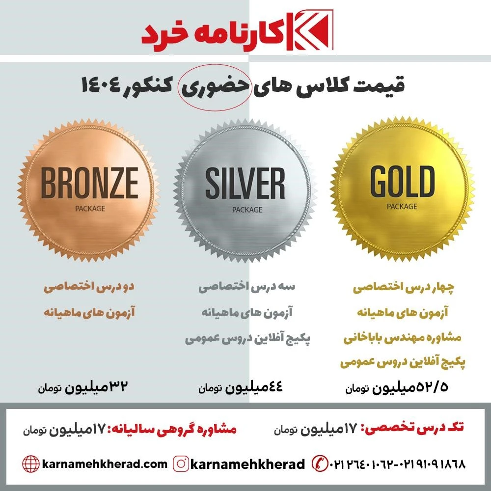 برای اطلاع از هزینه پایه های دیگر و کلاس های آنلاین به وبسایت آموزشگاه مراجعه نمایید.