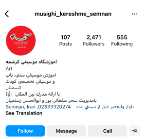 | 3 | آموزشگاه موسیقی کرشمه | سمنان، ولیعصر، بین مولوی و شریعتی | 02333320274 |