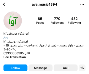 | 9 | آموزشگاه موسیقی آوا | سمنان، خیابان سعدی، سعدی 15 | 02333330305 |